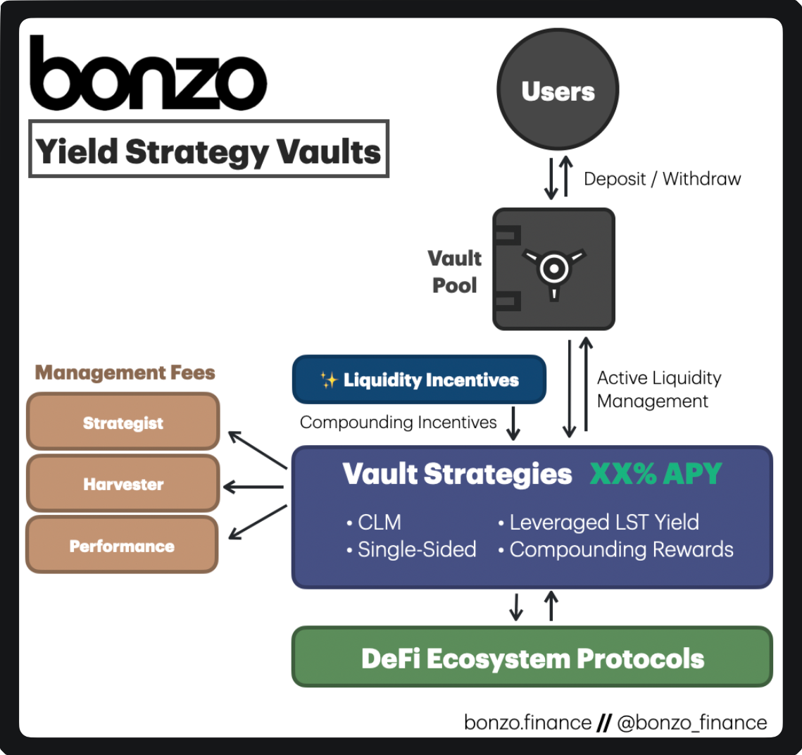 - Retail & Institutional DeFi Users can utilize Bonzo Vaults to automate liquidity across the Hedera DeFi ecosystem and maximize yield opportunities. Bonzo Vault strategies make institutional-grade liquidity management available to everyone.