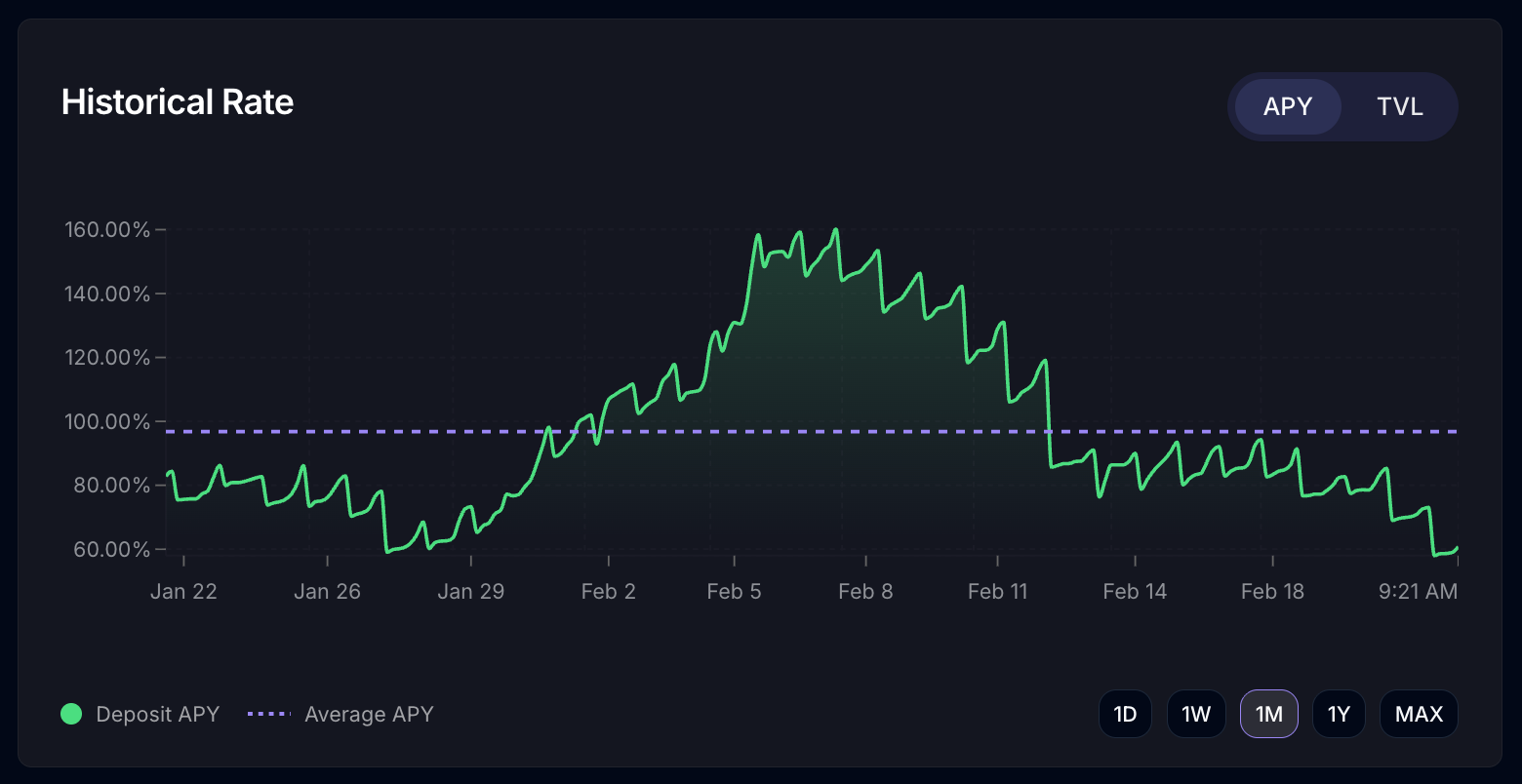 The 30D Performance comparison offers users a better understanding of how — 1) market dynamics 2) the vault’s mechanics and 3) when they both deposit or withdraw — can result in their position being above or below a reference point of just holding the asset. It also better exemplifies vaults being utilized as a long-term tool (amongst many other DeFi tools in the ecosystem), rather than a short-term quick-win strategy.